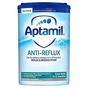 Babies often regugitate small amounts of milk after feeding, sometimes, with wind; this commonly referred to as posseting and is perfectly normal.b Aptamil Anti-Reflux is specially formulated with carob bean gum and is shown to be thicker on preparation than other feeds. It is less affected by the enzymes in saliva meaning that it remains thicker in the stomach, helping the feed to stay down. It is a nutritionally complete formula. You can use it to feed your baby as a sole source of nutrition from birth and as part of a weaning diet from 6 months to 1 year.